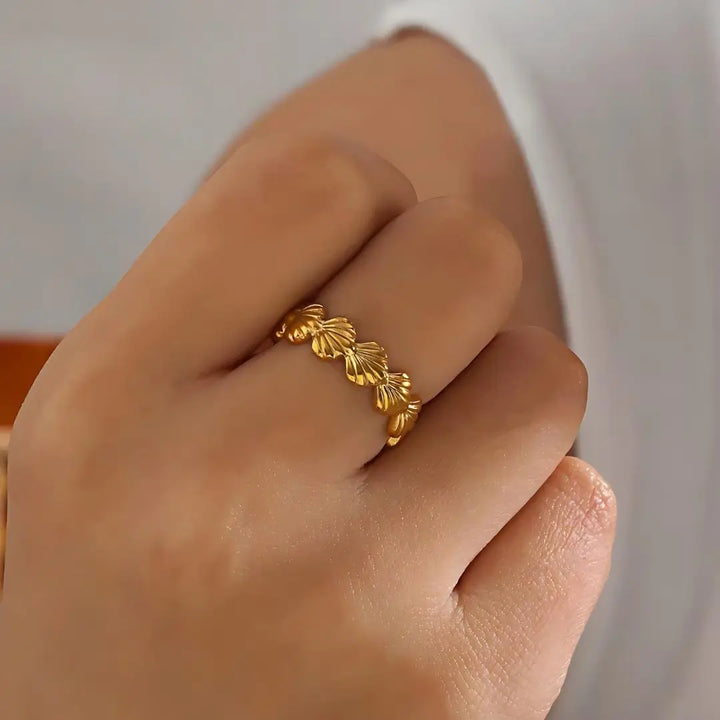 Sinta o encanto do mar em cada detalhe do Golden Shells. Um anel leve, versátil e radiante — feito para iluminar o seu estilo. Garanta o Seu na Kiya Joias!