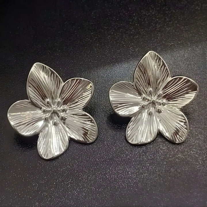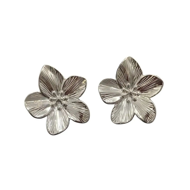 O Brinco Flor Silver une delicadeza floral e brilho prateado em um design retrô.