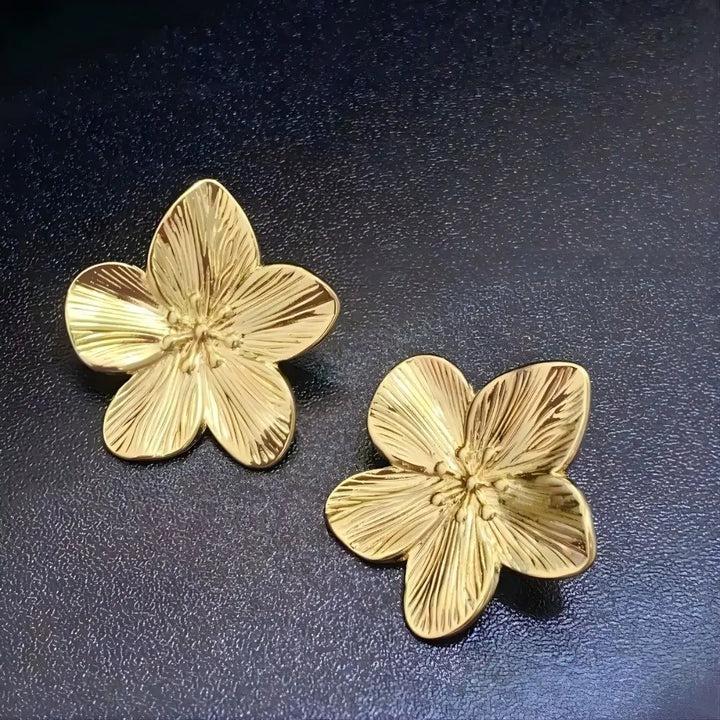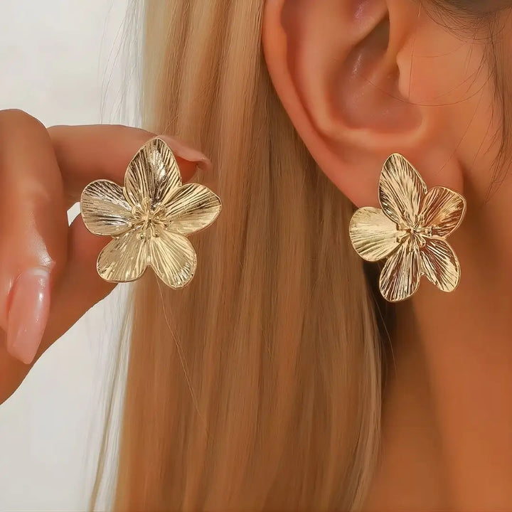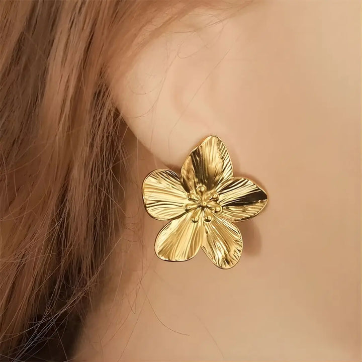 O Brinco Flor Golden une delicadeza floral e brilho dourado em um design retrô.