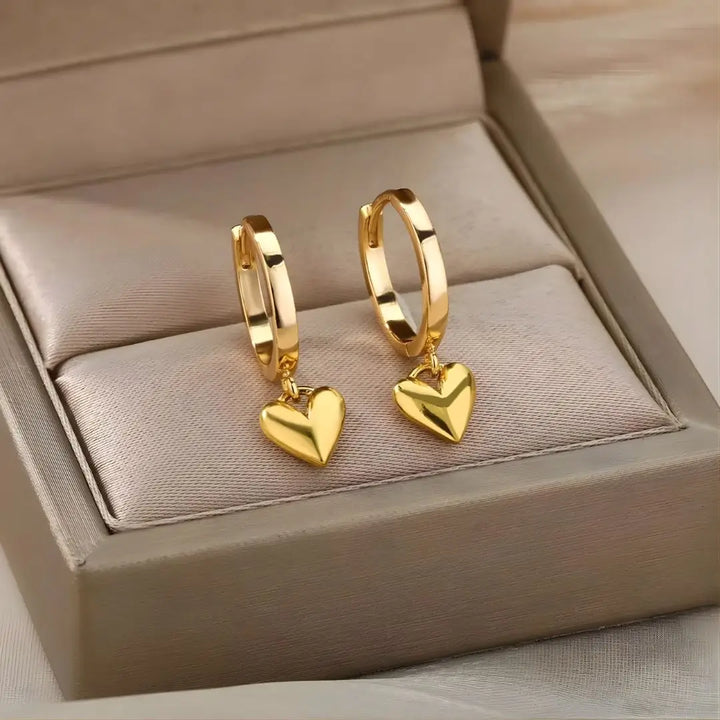 Encante-se com o Brinco Dourado Feminino Modelo Coração Minimal — uma peça simples, elegante e feita para durar.