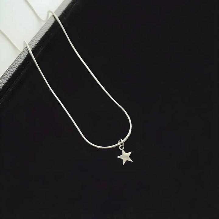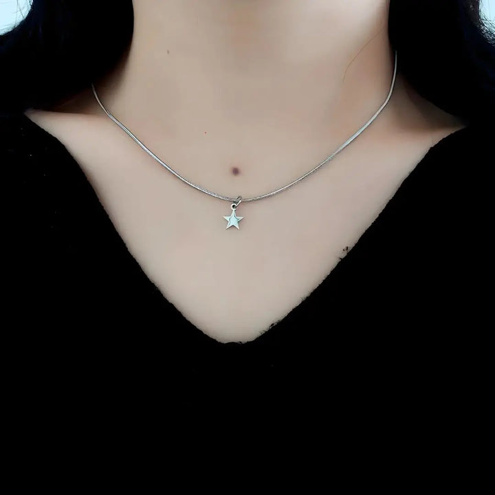 Em aço inoxidável cor de aço, traz pingente de estrela minimalista com brilho moderno — perfeito para quem ama detalhes que duram e busca um colar estrela para o dia a dia.