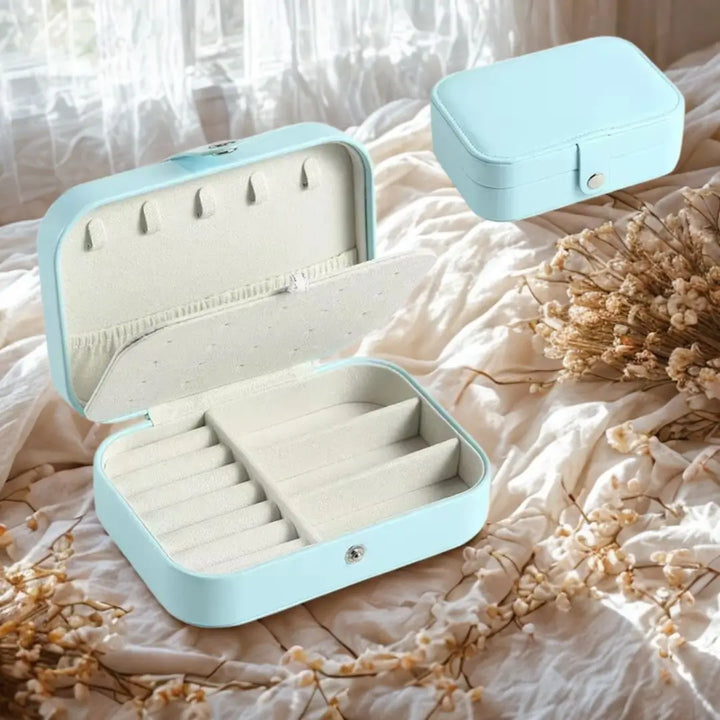 O Porta Joias Amaya Azul combina sofisticação e funcionalidade em um design compacto e encantador. Ideal para organizar suas joias com segurança e estilo, é o acessório perfeito para o dia a dia ou viagens.